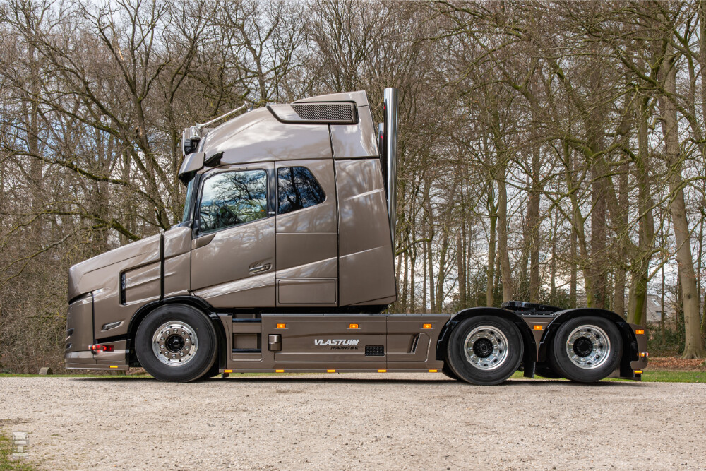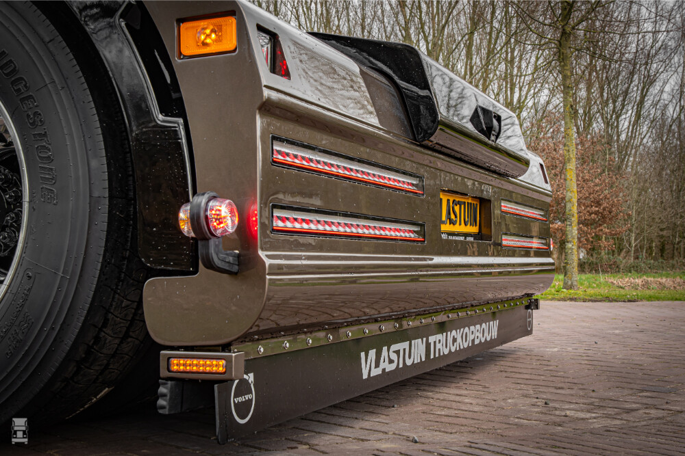 Naast het compleet nieuwe front bouwde Vlastuin ook een nieuwe achterbumper met liggende LED strips met gecombineerde verlichting. Verder is de truck voorzien van een nieuw type lichtbak met opliggende, acrylaat letters met ingegoten LED verlichting. Achter de cabine staat een indrukwekkend slangenrek met een levensgroot, verlicht Volvo logo.
