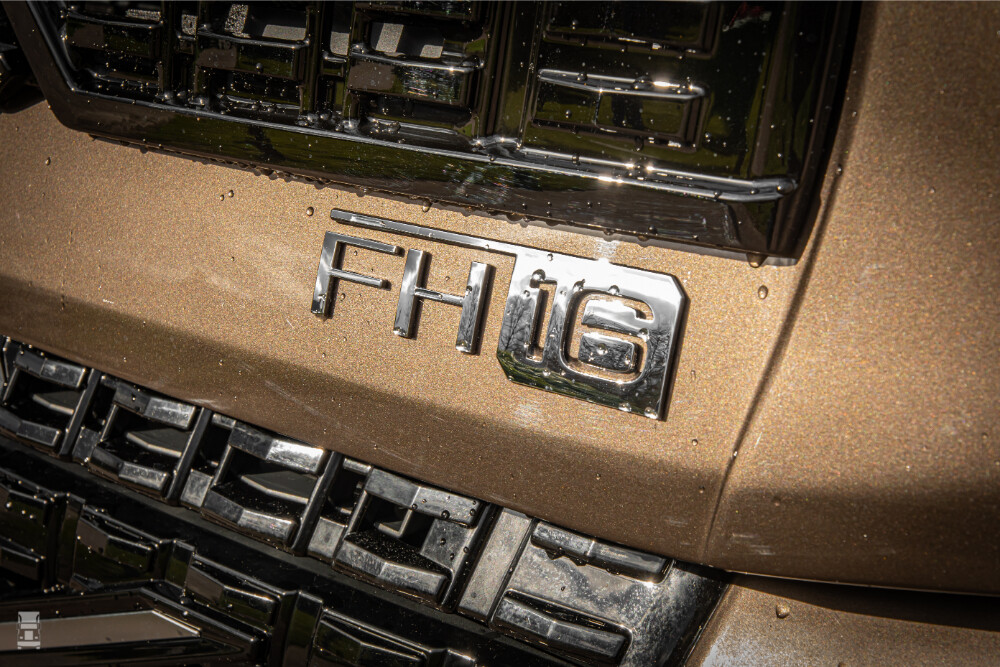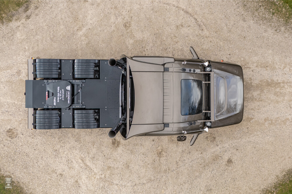 De onderpartij van de VT5 Aero is geheel origineel, met achter de voorbumper de originele Front Underrun Protection en alle techniek op de originele plek. Dat geldt ook voor de afstandsradar, de koplampen en de fraaie Aero ondergrille. De cabine werd 130 cm naar achteren verplaatst, waarna er ruimte ontstond voor de nieuwe Aero neus. Die helt, net als de ondergrille, licht achterover, waarna de motorkap een fraaie overgang maakt naar de cabine.