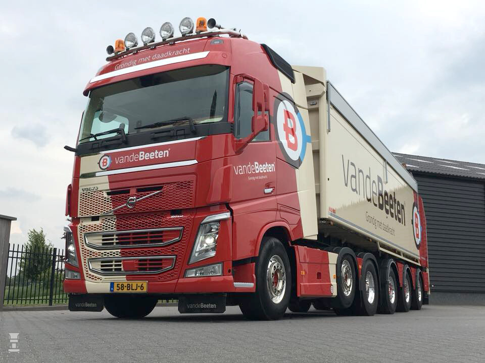Van de Beeten uit het Brabantse Veghel heeft een hele fraaie nieuwe combinatie op de weg gezet. Achter de stoere Volvo FH 6x2 is namelijk een unieke Bulthuis oplegger gekoppeld. Een oplegger die de nodige vragen oproept, want hoewel het er uit ziet als een kipper is het dat niet.