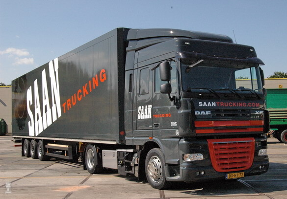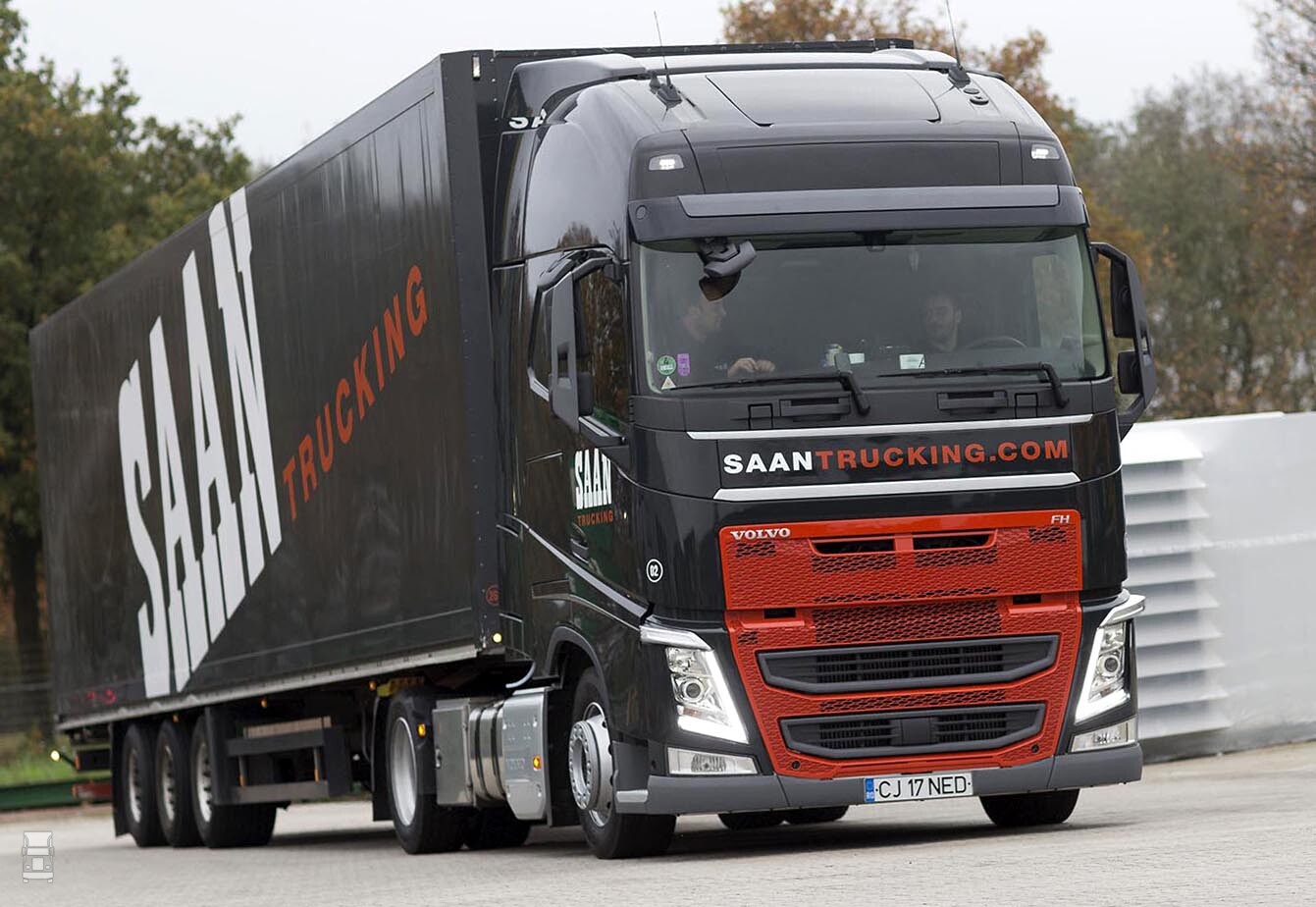 Saan Trucking heeft huisstijl die afwijkt van de bekende groene Saan. De Trucking afdeling legt zich volledig toe op het internationale transport van allerlei live-entertainment door heel Europa. Volgens Saan heeft het bedrijf tien trucks voor deze afdeling op Nederlandse kentekens. Voor de Roemeense vestiging werden er nu zeven fraaie nieuwe Volvo trucks aangeschaft.