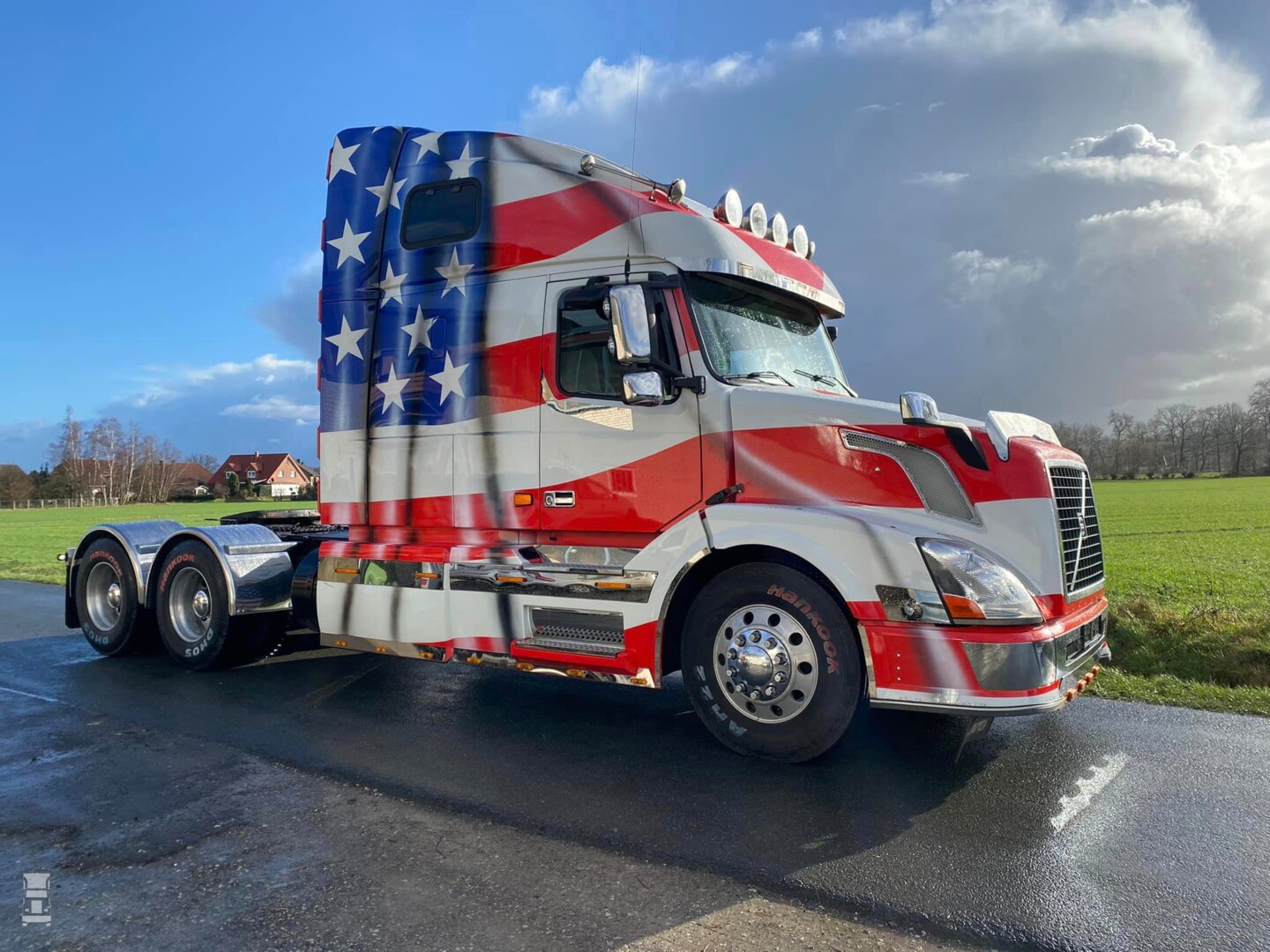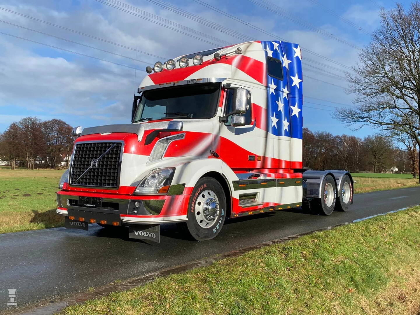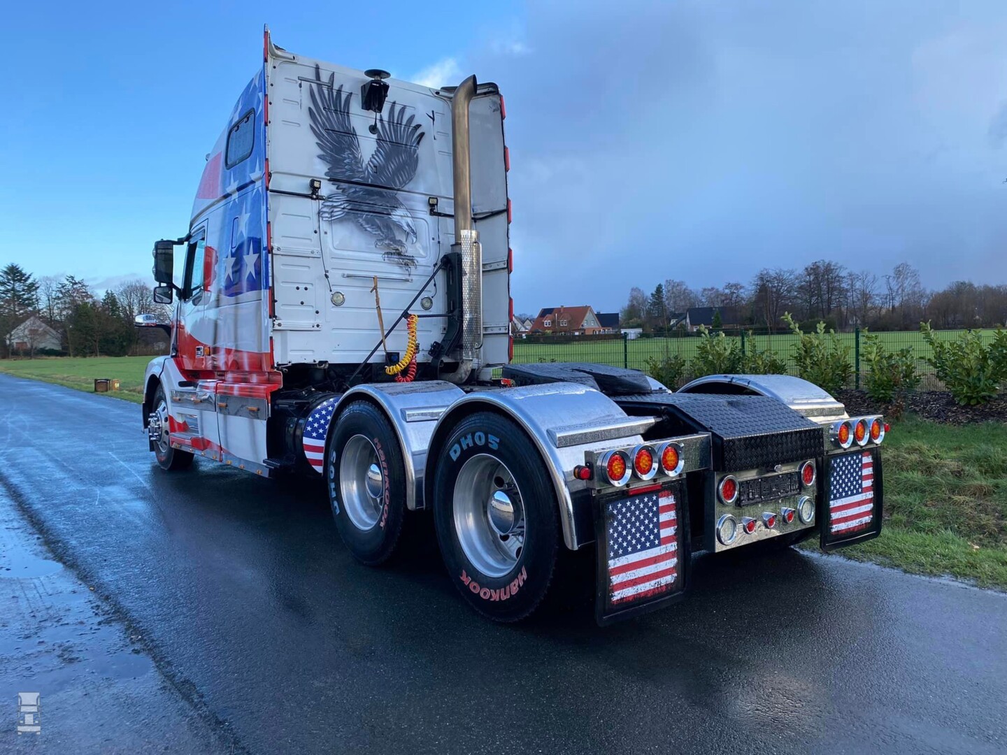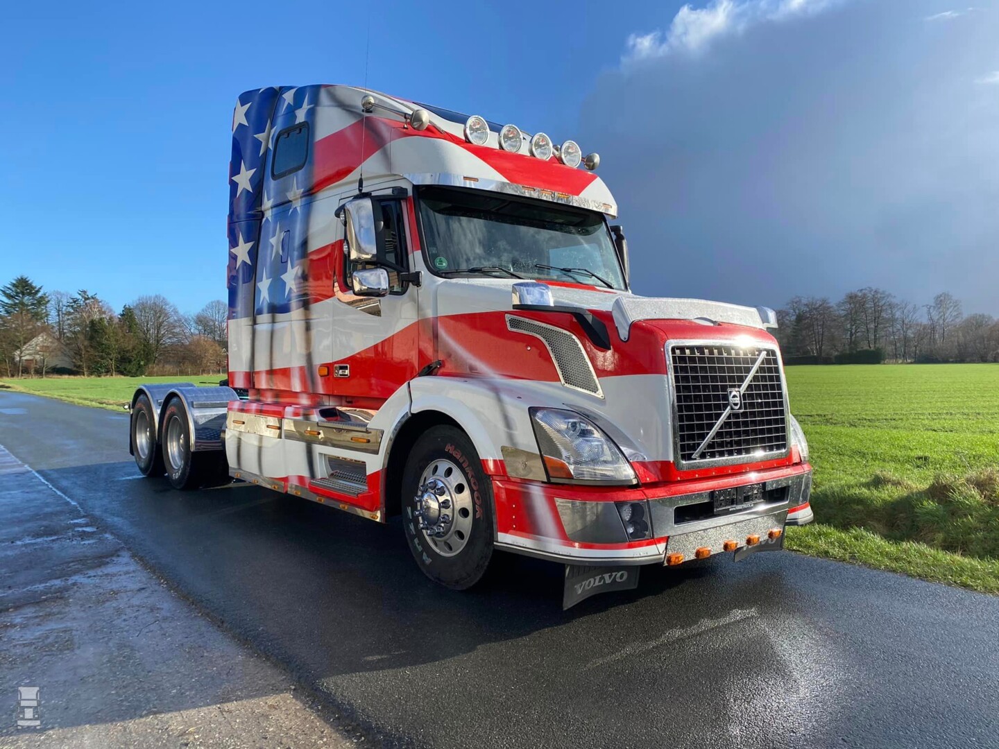 De trekker heeft een verstelbare schotel, luchtvering op de achterassen en is omgebouwd naar 24 volt aansluitingen voor de oplegger. In de USA werken ze namelijk nog altijd met 12 volt. Het belangrijkste is dat de trekker een Duits kenteken heeft, en dus zonder problemen op Nederlands kenteken te zetten is. Voor de liefhebber, de truck staat bij Klekamp Nutzfahrzeuge GmbH, je vindt dat bedrijf via Facebook.