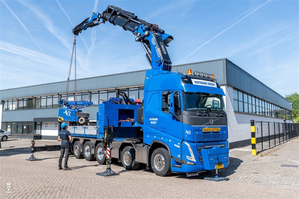 Om te hijsen is op het chassis een Fassi 145 tonmeter kraan gemonteerd. “Hier kunnen we letterlijk en figuurlijk alle kanten mee op”, stelt Voorn. “Klanten willen steeds meer een totaaloplossing voor al hun transport- en hijsvraagstukken. Wat de klant vraagt, moet je kunnen leveren en waarmaken, en dat op de juiste manier met modern materieel. Met onze nieuwe Volvo kunnen we dat nog beter: het is de zwaarste kraan die we ooit in gebruik hebben genomen.”