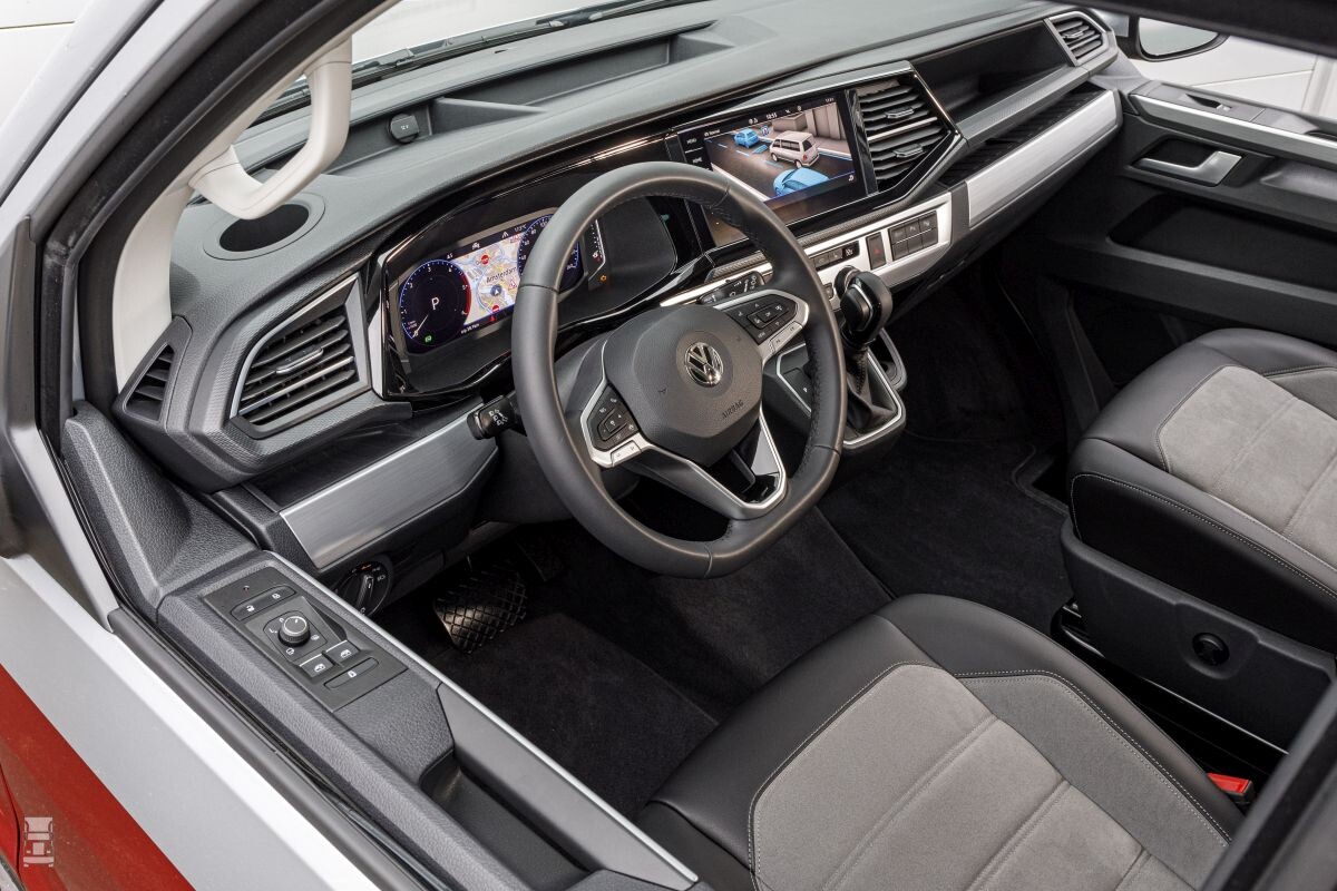 Maar wanneer we de nieuwe Transporter T6.1 bekijken, dan is de missie van VW zeker geslaagd. De voorkant oogt frisser zo, zal de dieseltjes betere koeling geven en de nieuwe grille biedt subtiel plaats aan de radarunit van de ACC, adaptive cruise control. Binnenin vallen een nieuw dashboard en stuurwiel op, nodig om de gehele bediening van de bestelauto te kunnen wijzigen. Dat moest, omdat de chauffeur over veel meer mogelijkheden beschikt met deze Transporter dan ooit tevoren. VW kennende, zullen al die nieuwe mogelijkheden vast wel iets kosten, maar het is maar mooi dat het allemaal kàn.