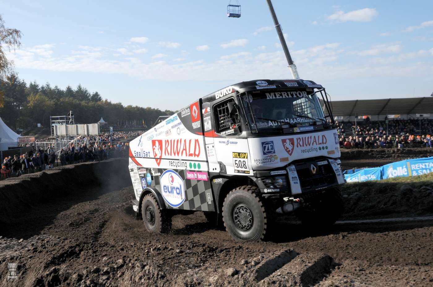 Alle grote namen lieten zien wat ze waard zijn en daarbij gaven ze de ruim 25000 fans waar voor hun geld. Grote winnaar werd alweer Gerard de Rooy met zijn fraaie Iveco Powerstar, of zullen we die stoere truck toch maar gewoon Strator blijven noemen? Opvallend was ook de komst van de twee nieuwe Scania rallytrucks met onder de plastic neusjes dit jaar gewoon wel een Scania krachtbron! Opvallende afwezige was het team van Mammoet Rallysport. Het team was wel aanwezig, maar zonder de rallytrucks. De auto van Pascal de Baar is nog in Tsjechië en aan de nieuwe Sherpa van Martin wordt nog druk gewerkt om hem klaar te krijgen voor de rally. Dat gaf Martin wel mooi alle tijd om posters en capjes te signeren in onze BIGtruck- Mammoet stand! Hier alvast een kleine indruk van de dag, in de komende BIGtruck uiteraard meer informatie over de komende rally!