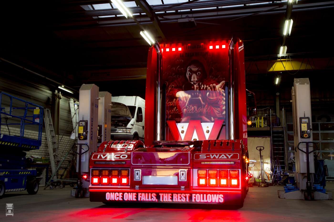 De meest spectaculaire Iveco van Nederland rijdt weer. De 'Casa de Papel' S-Way van Weeda raakte vorig jaar betrokken bij een ongeval, maar de schade is vakkundig hersteld en de Iveco rijdt weer, luider dan ooit zelfs!