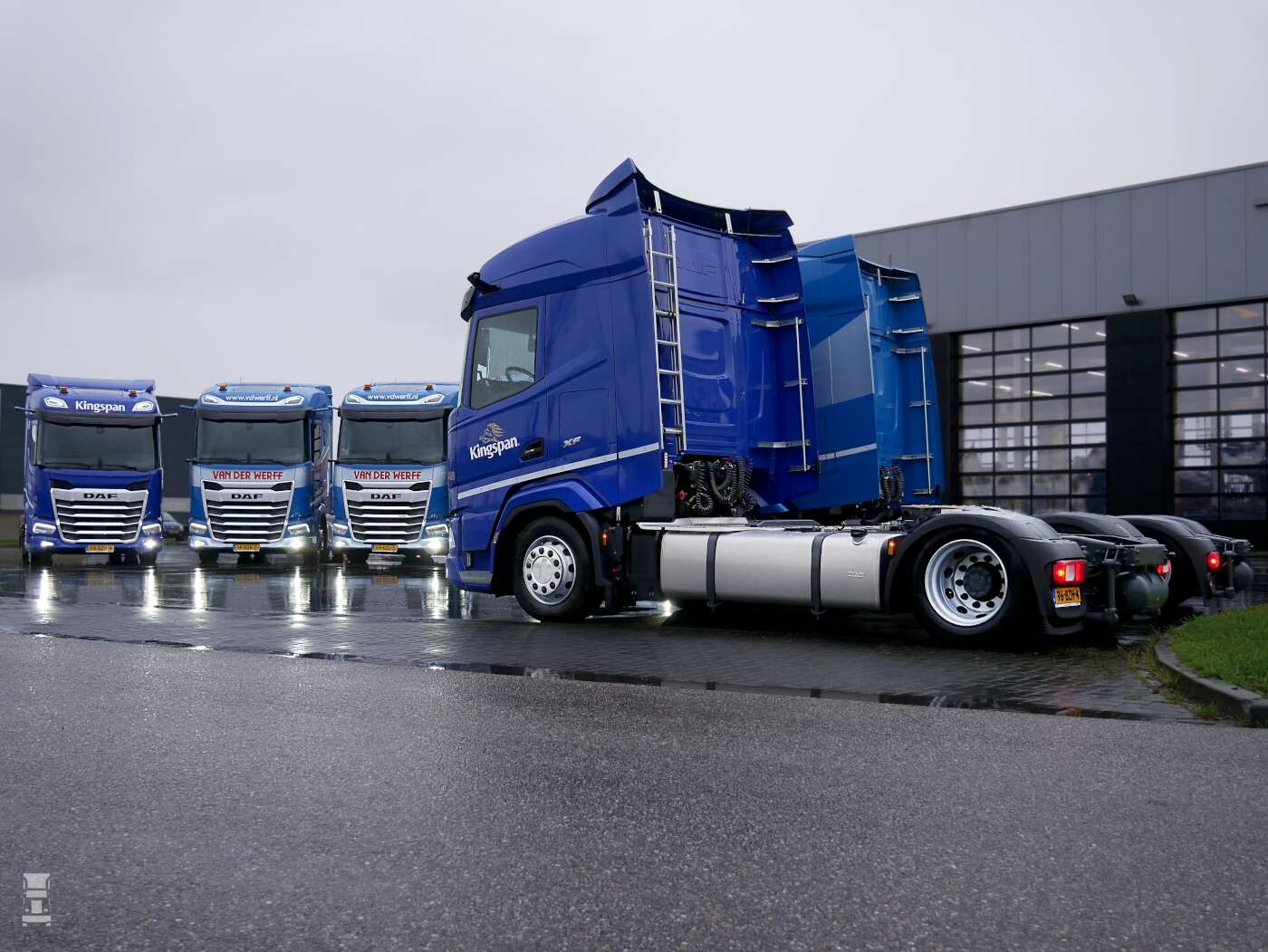 Twee DAF XF 450 FT low deck trekkers zijn uitgevoerd in de huisstijl van Kingspan Insulation. Ook deze trucks zijn volledig volgens de wensen van Van der Werff opgebouwd met alle luxe, en bovendien voorzien van de Kerb Vision Window in de rechter zijdeur voor optimaal zicht op de dode hoek. Deze twee trekkers zijn tevens voorzien van het DAF Digitial Vision Systeem Voor de aerodynamica is er een spoiler en fenderpakket gemonteerd.