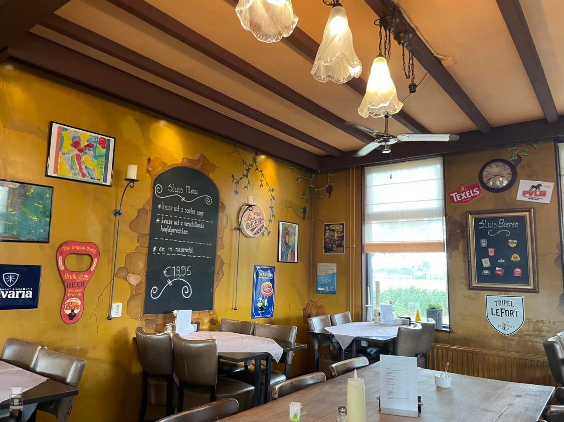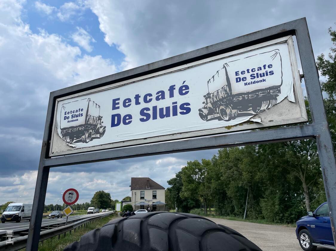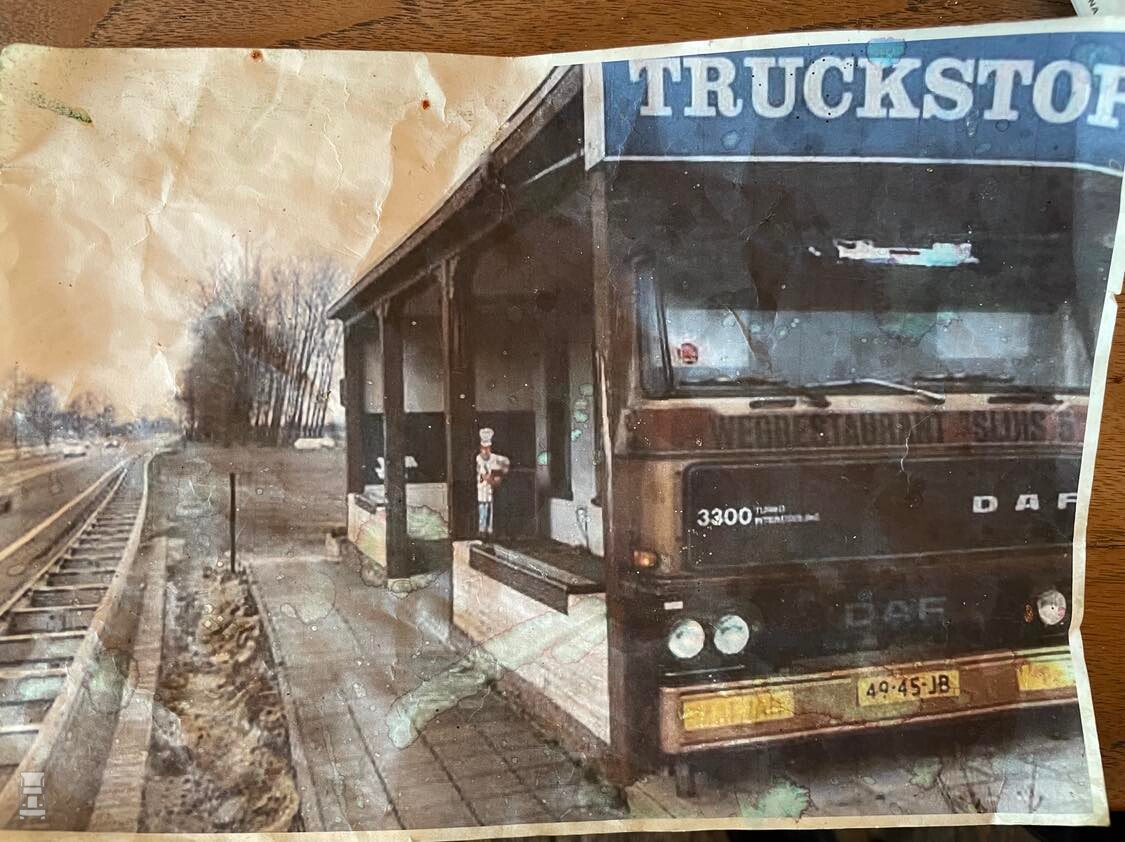 Het wegrestaurant ‘De Sluis’ is typisch een tentje zoals je dat vroeger overal aantrof. Het donkerbruine interieur ademt sfeer, de plankenvloer kraakt en talloze blikken bordjes en miniatuurtjes langs de wanden vertellen een verhaal. Ooit stond er aan weerszijden van de gevel een front van een DAF truck (Foto), in die tijd was dat een opvallende uiting van het restaurant. Ronald: ,,Heel veel oude chauffeurs hebben het er nog over, maar die trucks waren al weg toen ik hier begon’’.