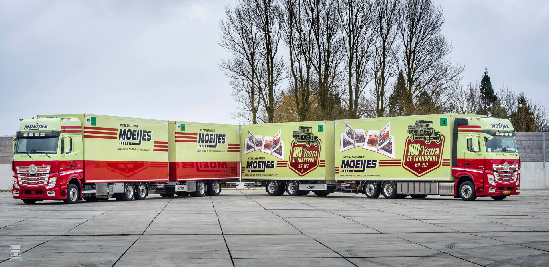 De vloot van Wezenberg Transport omvat op dit moment 170 trekkende eenheden. Met de overname van Moeijes komen daar 85 trucks bij, waarmee het totaal op 255 eenheden komt. Met deze overname komt er op termijn waarschijnlijk een einde aan de bekende kleuren van het meer dan 100 jaar oude Moeijes Transport. Hier onder een paar historische foto's van dit bedrijf.