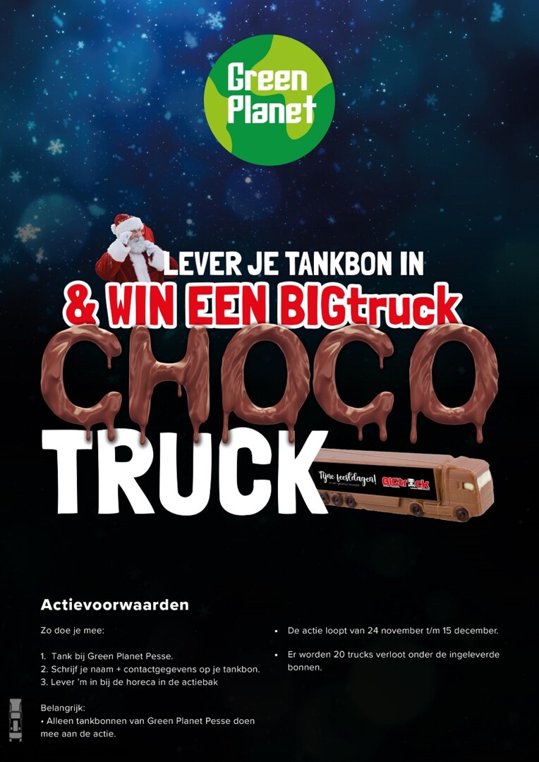 Green Planet verloot maar liefst 20 ChocoTrucks onder alle deelnemers. Kijk snel op de actiepagina voor de voorwaarden en hoe je mee kunt doen!