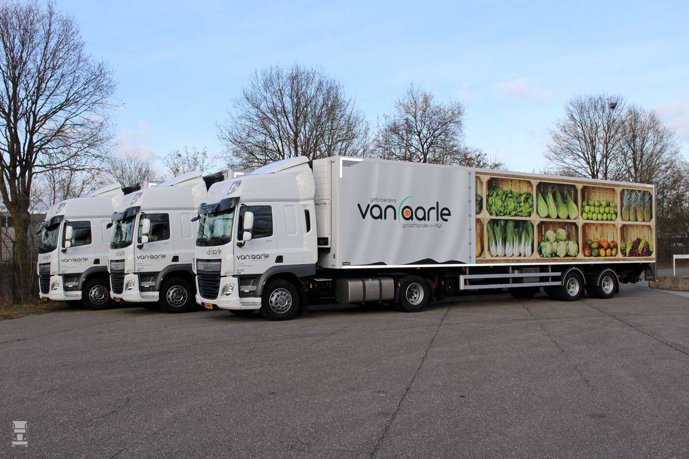 Bij de groothandel zijn de DAF’s (twee CF 400 FTG, een CF 400 FT) als eerste trucks uitgevoerd in de nieuwe huisstijl. Verder zijn ze voorzien van een Space Cab met skylights, een geautomatiseerde AS-Tronic versnellingsbak, silent-pakket, spoilerset, MX engine brake en een camerasysteem. Per jaar legt elke vrachtauto bij Van Aarle zo’n 135.000 kilometer af.