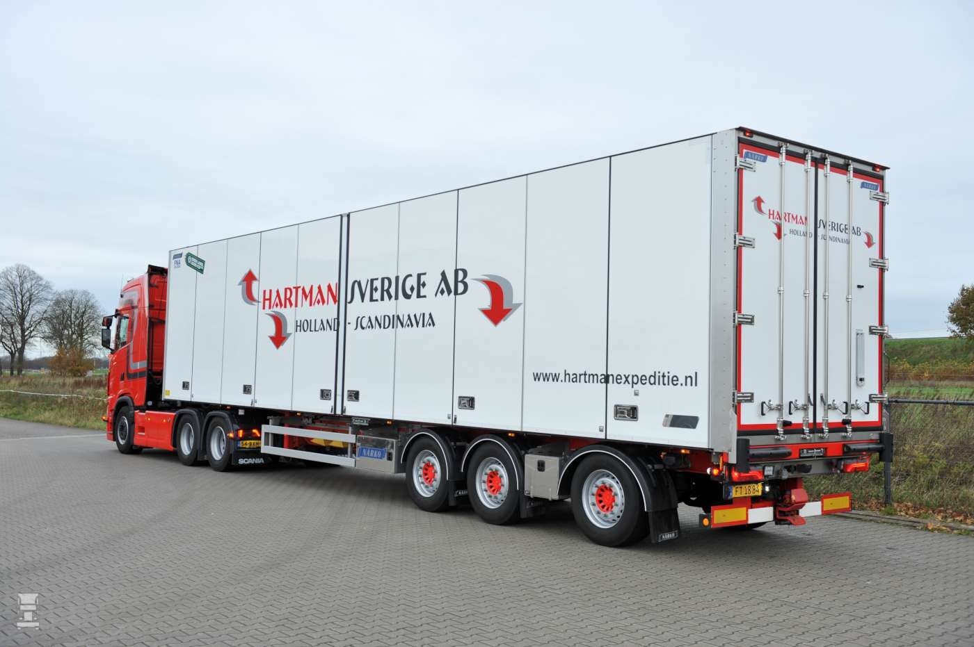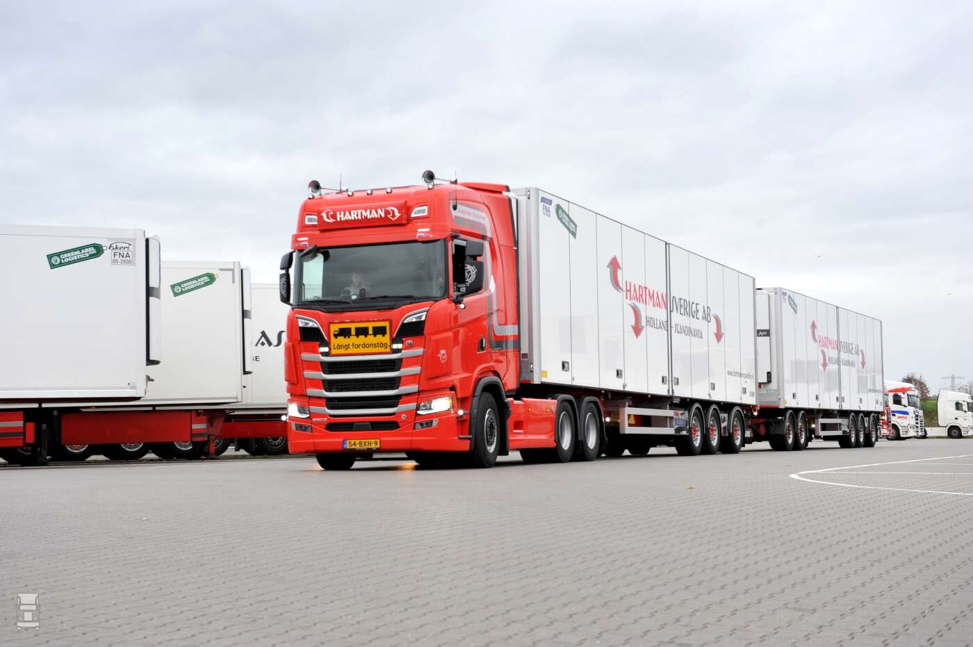 Hartman Expeditie rijdt al met dergelijke combinaties in Zweden en dit bedrijf staat dan ook te popelen om mee te gaan doen met de Nederlandse proef op de openbare weg. Hartman Expeditie verstuurt dagelijks enorme volumes naar Scandinavië van gemiddeld vijftig trailer ladingen. Zweden staat sinds enige tijd 34 meter lange combinaties toe met totaalgewichten tot 74 ton onder bepaalde voorwaarden. Zo moet er met dat gewicht een 6x4 trekker voor staan met voldoende vermogen en moet de eerste trailer voorzien zijn van een stuuras. Hartman Expeditie investeerde in vier Scania 660S 6x4 trekkers en vier speciale opleggers voor inzet in Zweden.