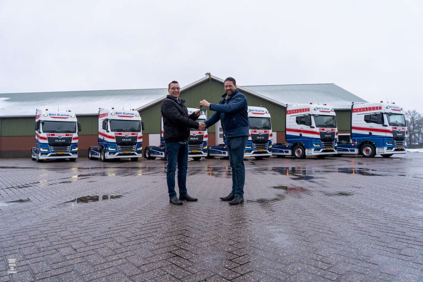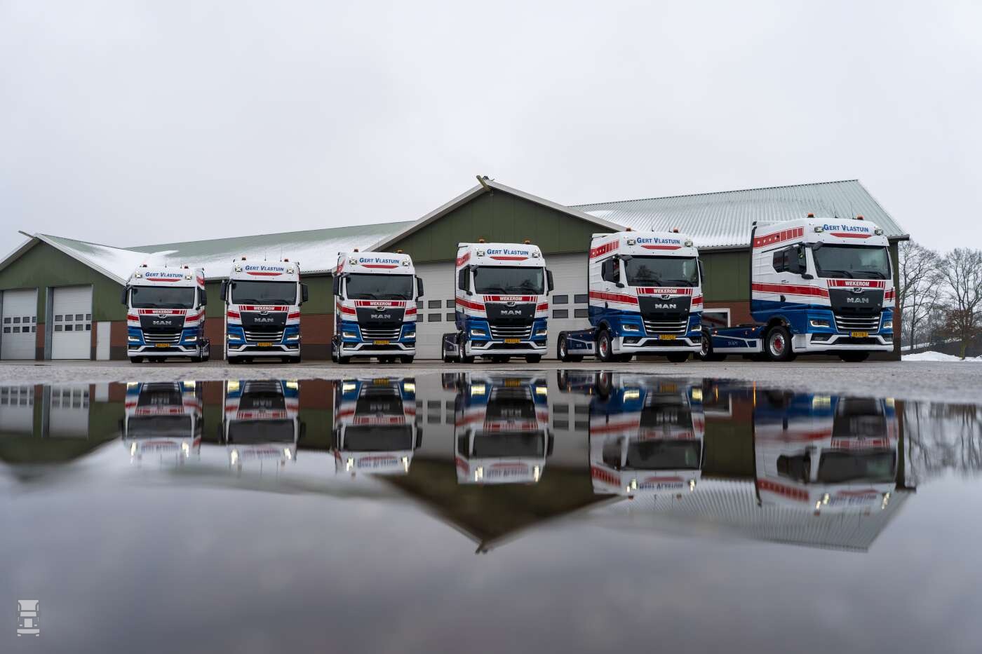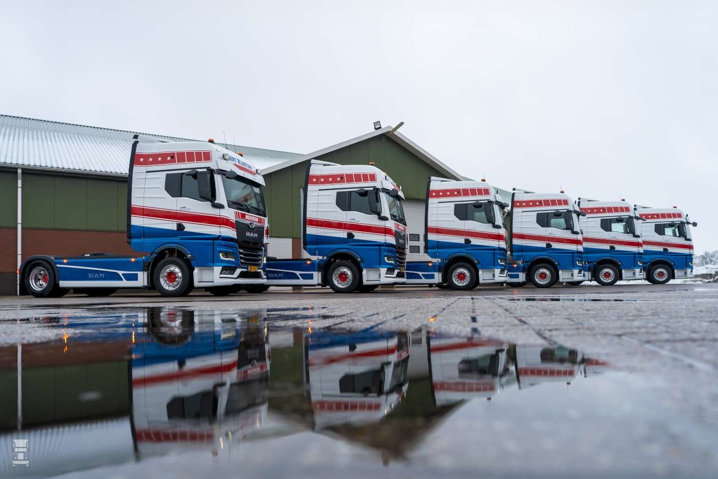De trucks zijn uitgevoerd in de huisstijl van Gert Vlastuin Transport, met extra verstralers op de wit gespoten zonneklep en fraaie aluminium wielen. Later dit jaar volgen nog drie identieke MAN-trekkers, maar dan van het type eTGX. Volledig elektrisch dus. “Misschien zijn dit wel de laatste diesels die we gekocht hebben, wij gaan met de elektrische trucks de mogelijkheden verkennen om ervaring op te doen”, aldus Erwin Vlastuin.