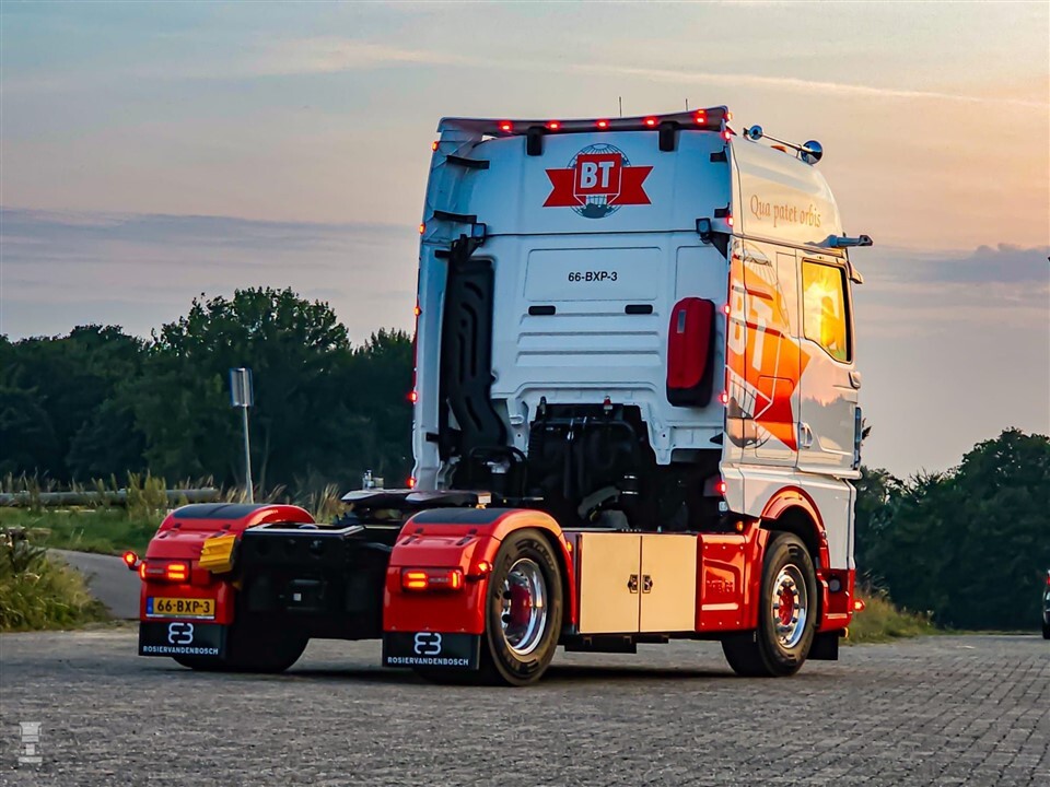 Ook BT 1223 is een volledig uitgeruste vrachtwagen, voorzien van lichtbak en veel extra verlichting. Op de zijkant vinden we, zoals bij de andere vrachtwagens van Braanker, de spreuk ‘qua patet orbis’ oftewel ‘zo wijd de wereld strekt’. De vrachtwagen is opgebouwd door TSW Truckstyling in samenwerking met M&M Truckdesign.