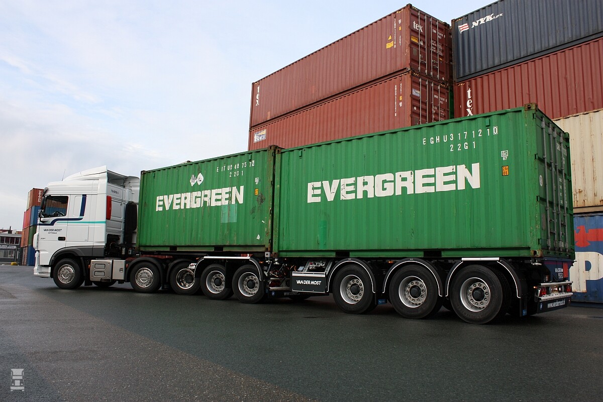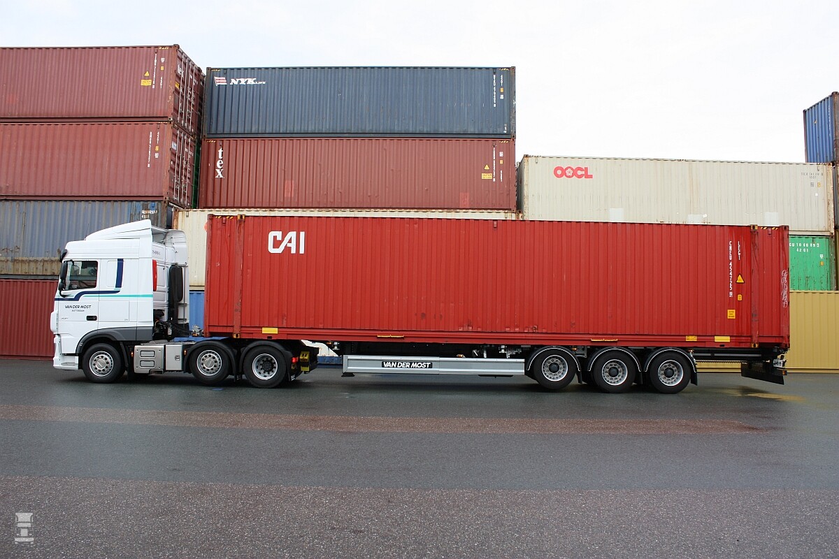 Van der Most Transport heeft 160 containerchassis in haar vloot waarvan het merendeel bestaat uit Flexitrailers. ‘Met de Flexitrailers kunnen wij alle maten ISO-containers vervoeren, omdat het chassis in het midden en aan de achterzijde uitschuifbaar is.