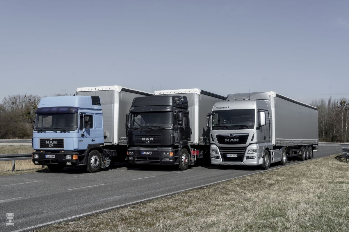 Met een brede glimlach zetten we de veteranen op de parking en maken tot slot een rondje met een MAN TGX met 500pk, full options. Echt, je hebt veel minder te doen, de software haalt je letterlijk en figuurlijk veel werk uit handen. Het verbruik moet getuige de veel gunstigere koppelkromme een kwart tot een derde beter zijn. Daar komt dan ook nog eens een veel beter comfort bij: de F90 had geen airco, de F2000 blies koude lucht en de TGX heeft natuurlijk klimaatregeling. Those were the days? Zeker, maar al dat nieuwe spul , of het nu van MAN is of van iemand anders, is onvergelijkbaar veel beter!