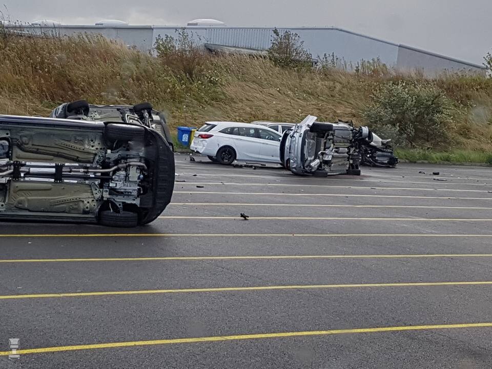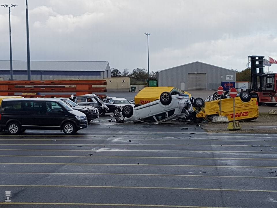 Tijdens de zware storm van afgelopen nacht is er veel schade ontstaan in de haven van Travemünde. De noord-Duitse havenstad werd niet alleen getroffen door heftige rukwinden, maar ook door een dronken heftruckchauffeur die nieuwe auto's in het rond gooide.